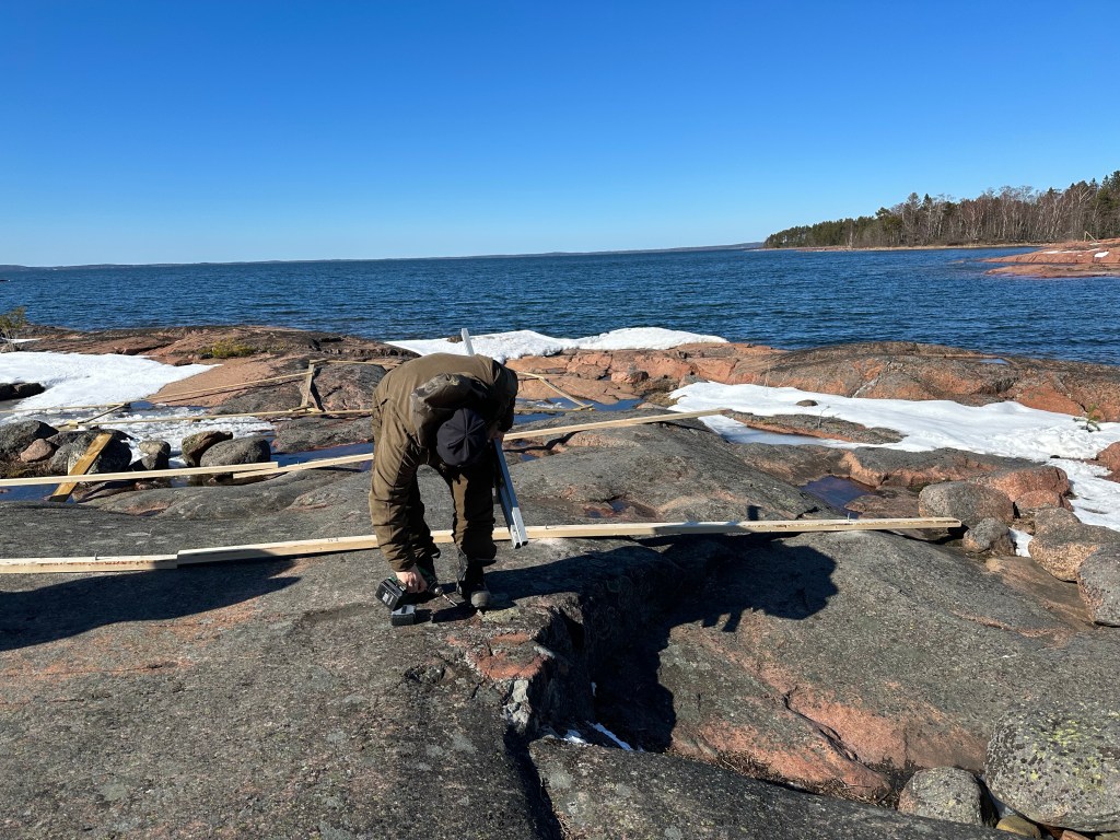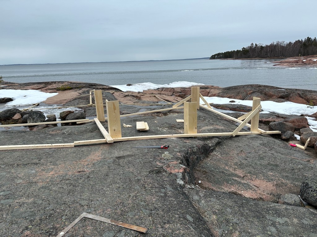 Vi bestämde oss för att gjuta plintarna istället för att använda lecablock. Blir stadigare, snyggare och lättare att få allt vågrätt på ett ojämnt berg.